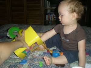 Our serial continues. I decided to teach Edie a bit order and keep things on theirs place. I know that now he will probably not understand my guidance, but I just keep telling him nice things when he puts his toys into the box. One thing is that it is entertaining for him, second it develops his motorical skills and third I am teaching him to make order in what he does. I hope believe that once he will remember from his childhood what should be done to keep his life organized.