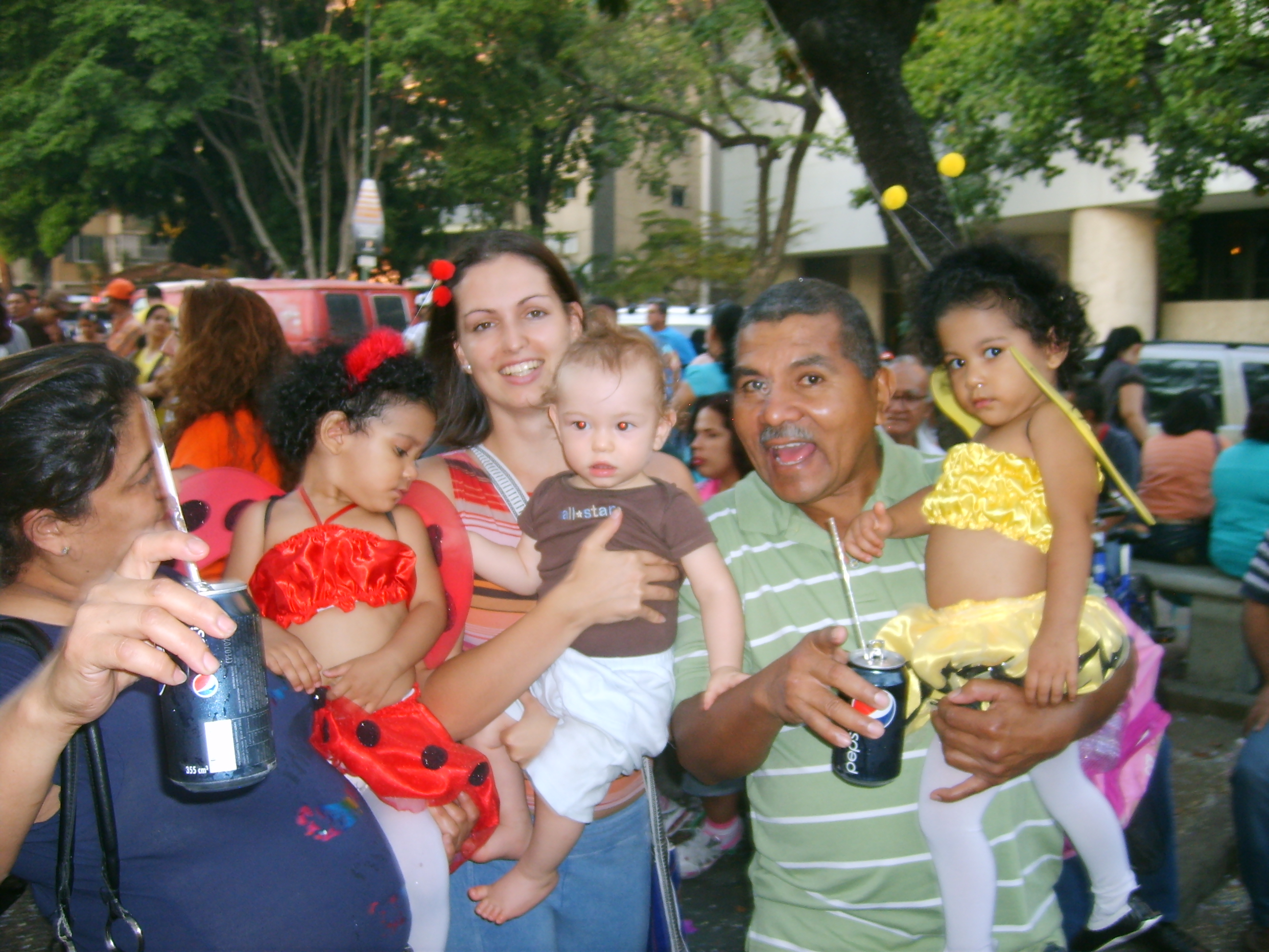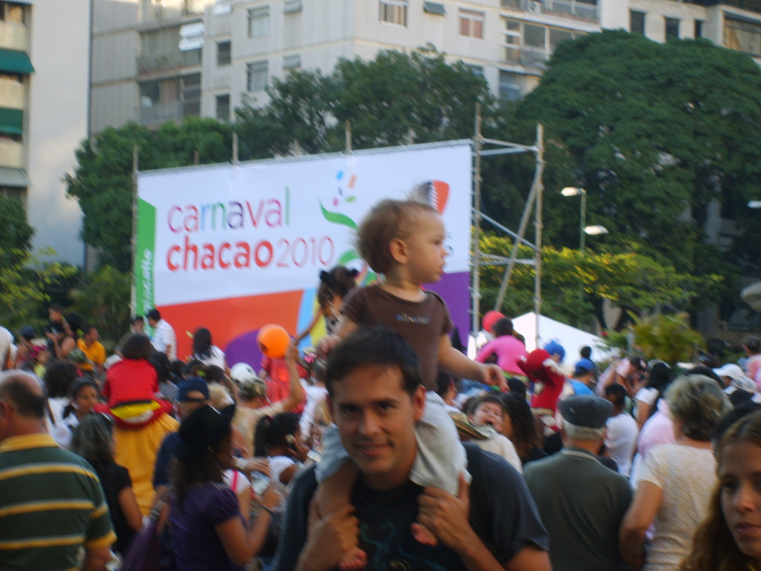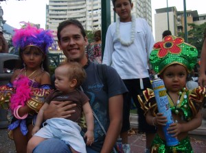 The Carnival is celebrated in the two levels. One is by adults which remained in its pure quality only in Brasil, where people get basically naked and dance on the street their souls out and sweat blood :). In Venezuela and other neighboring countries they stopped to celebrate carnival in such a spectacular way because of robberies and steeling. Adults usually celebrate with their friends in the beach. Take a drinks and have fun in the sea side. The colorful way of celebrating carnival remained only for the kids. It is big fun to see on the streets and shopping molls different fairy tales characters who interact with kids and make them laugh. Nearly every part of city Caracas prepared carnival celebration with games and performances for kids. We have visited municipality Chacao which always keeps nice and wild celebrations. As you can see Edie was enjoying his time with another kids as we were.