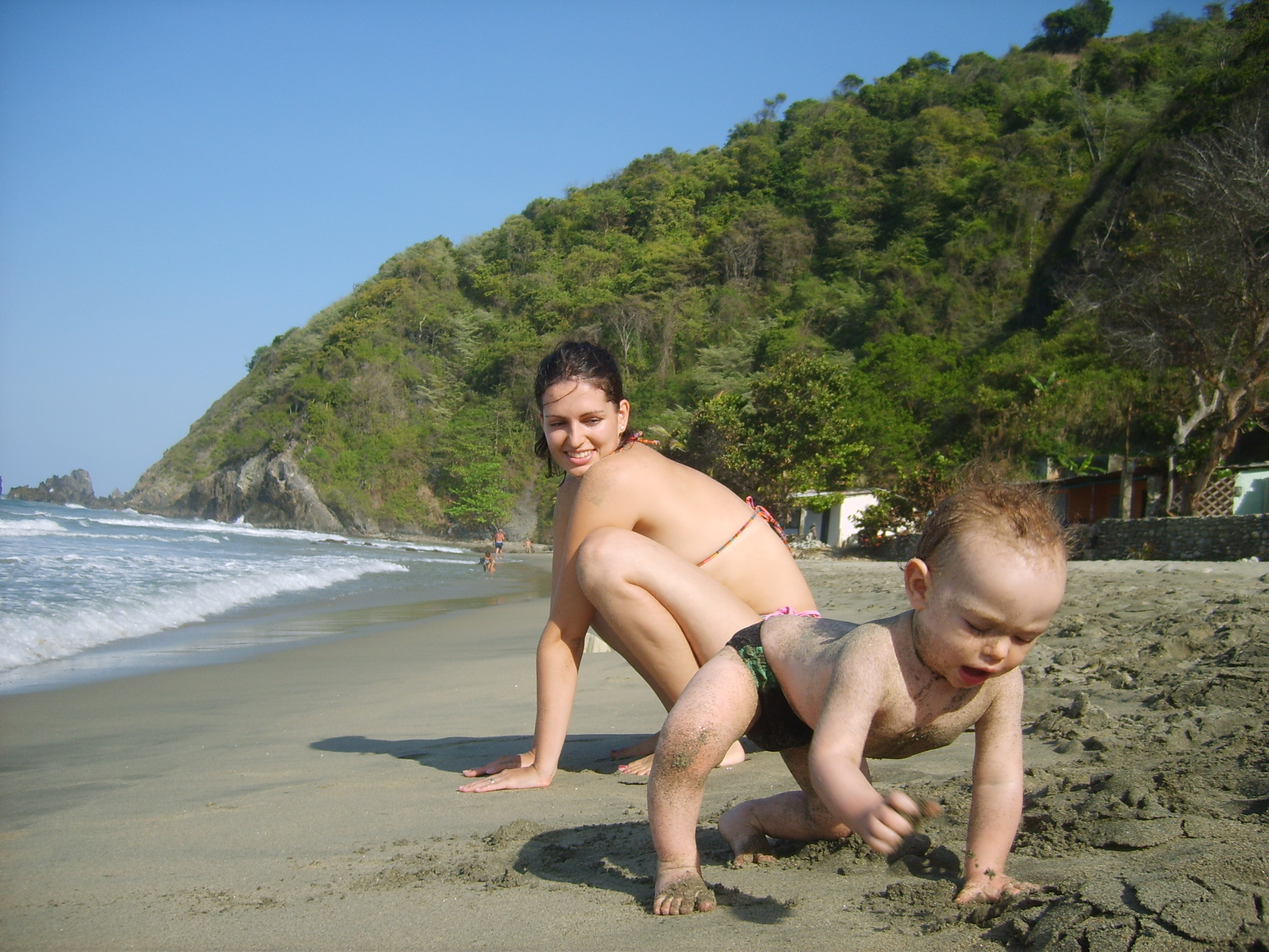 - He loves to play – there is no change and now we started to go to baby gym. He loves to spend time with other kids so I try to be out with him as much as possible. He also loves water and on the beach he spends most of his time playing in the sand. He likes his texture and taste. He is able to play nicely on xylophone, he is able to twang the strings of guitar. He loves music and now he is always swinging his body into rhythm of music. It is fun to see him dance. He tries to draw with crayons, but he is eating them too so I have to control him while doing art stuff. He loves to put tops and closures to different boxes, bottles and everything what has some top. I let him. He loves to take things off the box and put them back (this is the good part). He is rather organized. And he loves to play “hide and seek”.