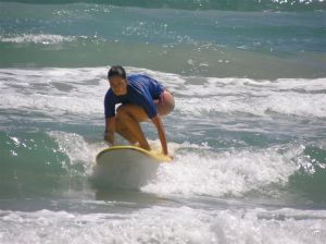 So for surfing you need only board, good sun block and yourself. Surfing is done through few basic positions.