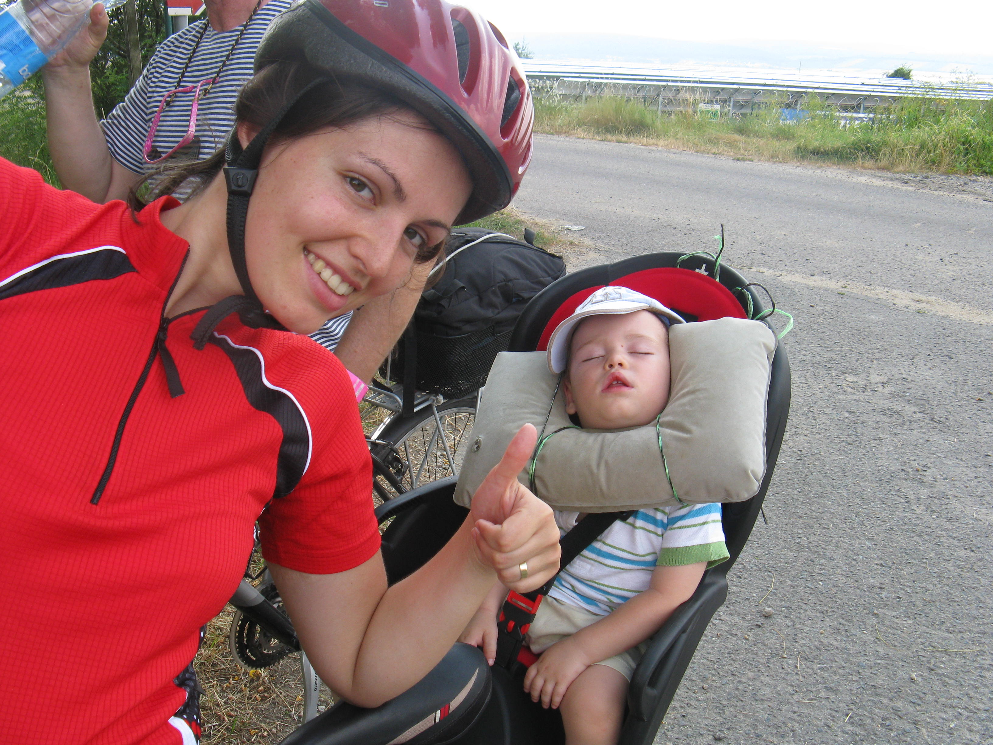 So in the end let me just share one little tip for going cycling with your child. We gave Edie as 17 month present cycling trip. He did not have yet his helmet but we managed anyway.