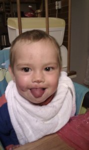 his talking, such a fun……….hmmm ok talking it is not the right expression. He is definitely repeating words or he tries and loves some particular one.