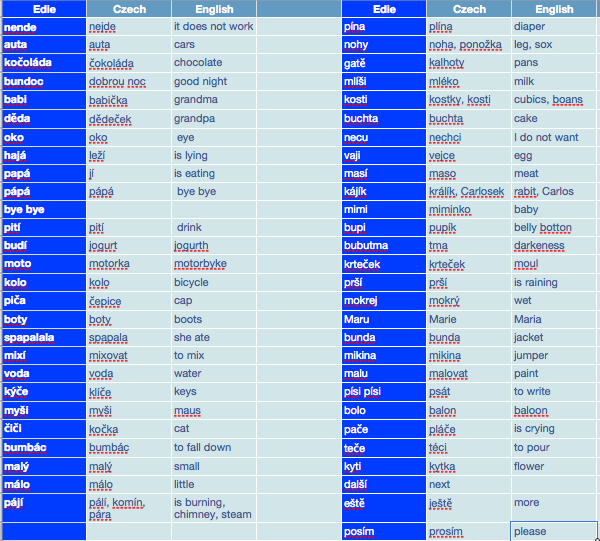 And now after few advices, here is already the active Edie vocabulary of now he is 2 years and 3 weeks old.