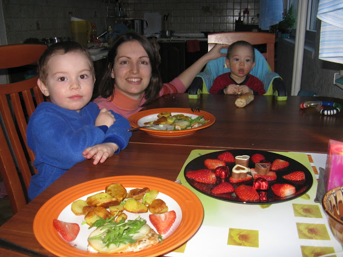 - He is eating already 4 times per day. He has breakfast, lunch, afternoon snack and also dinner, Rest of the time he has still his loved milk. He is very well eater, he is able to consume about 300 ml of food. Which is a lot. He started also with peaces, It is funny to see him how he is enjoying pasta, or roll……it is everywhere, but he is loving it. He loves to be trying new things and also new tastes. Which is great……I am looking forward the time when I will be cooking only one things for all of us. But luckily I have big helper Edie, who is cooking and preparing with me. Big Chef 🙂